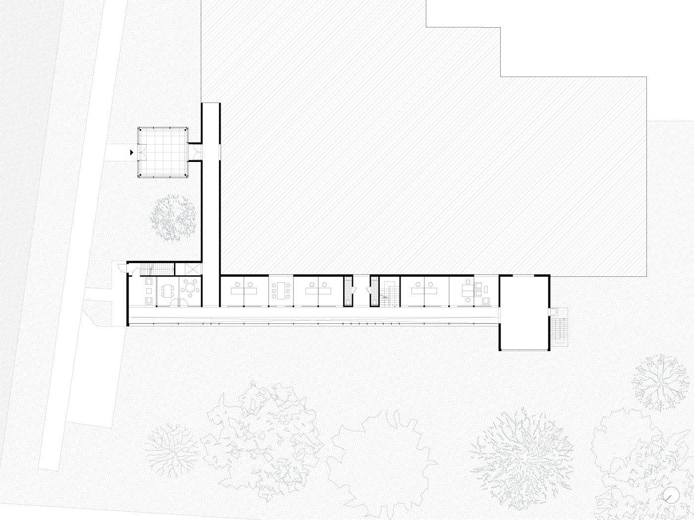 De bestaande inkom wordt geconnecteerd met deze nieuwe vleugel.